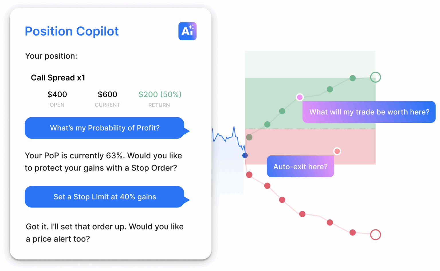 Options AI makes spreads as simple as zones of profit and loss on a price chart – so anyone can enjoy the power of advanced trading.